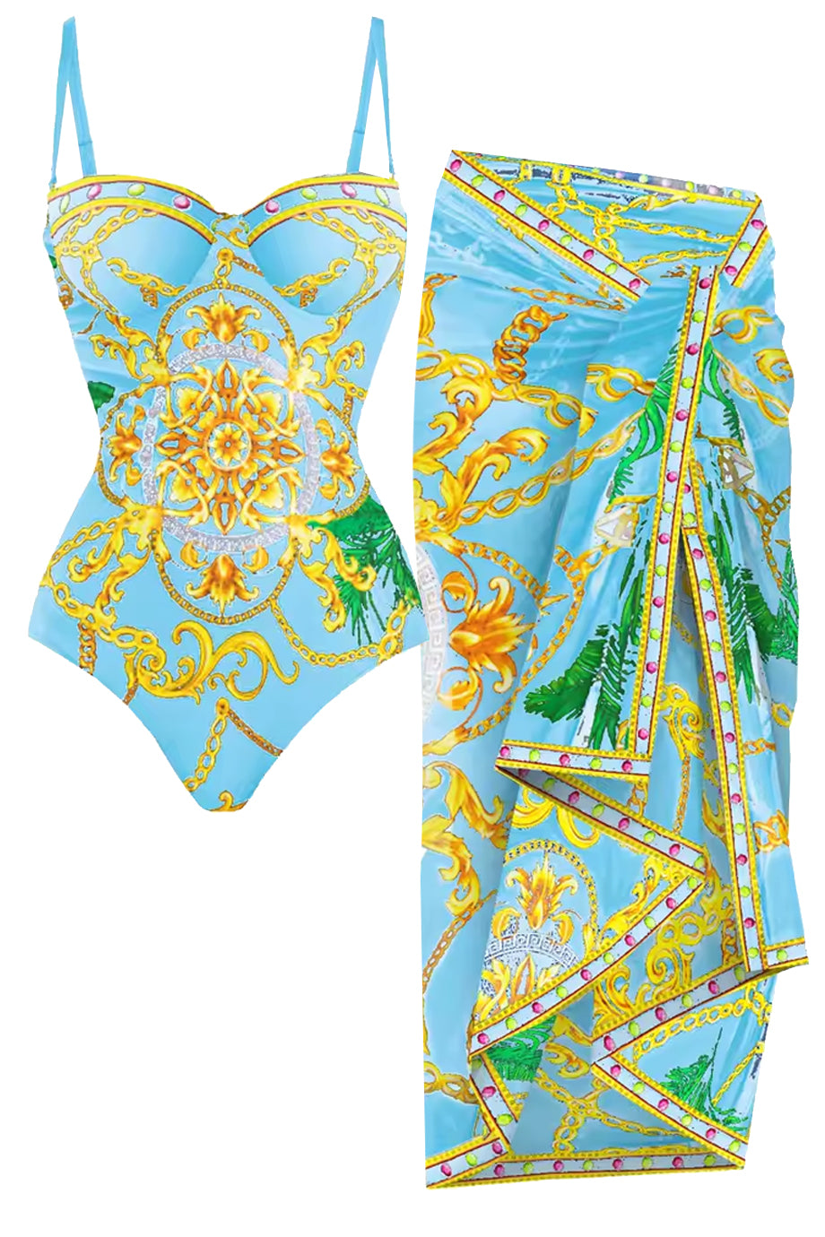 Aegean Glow One-Piece Swimsuit and Pareo Set