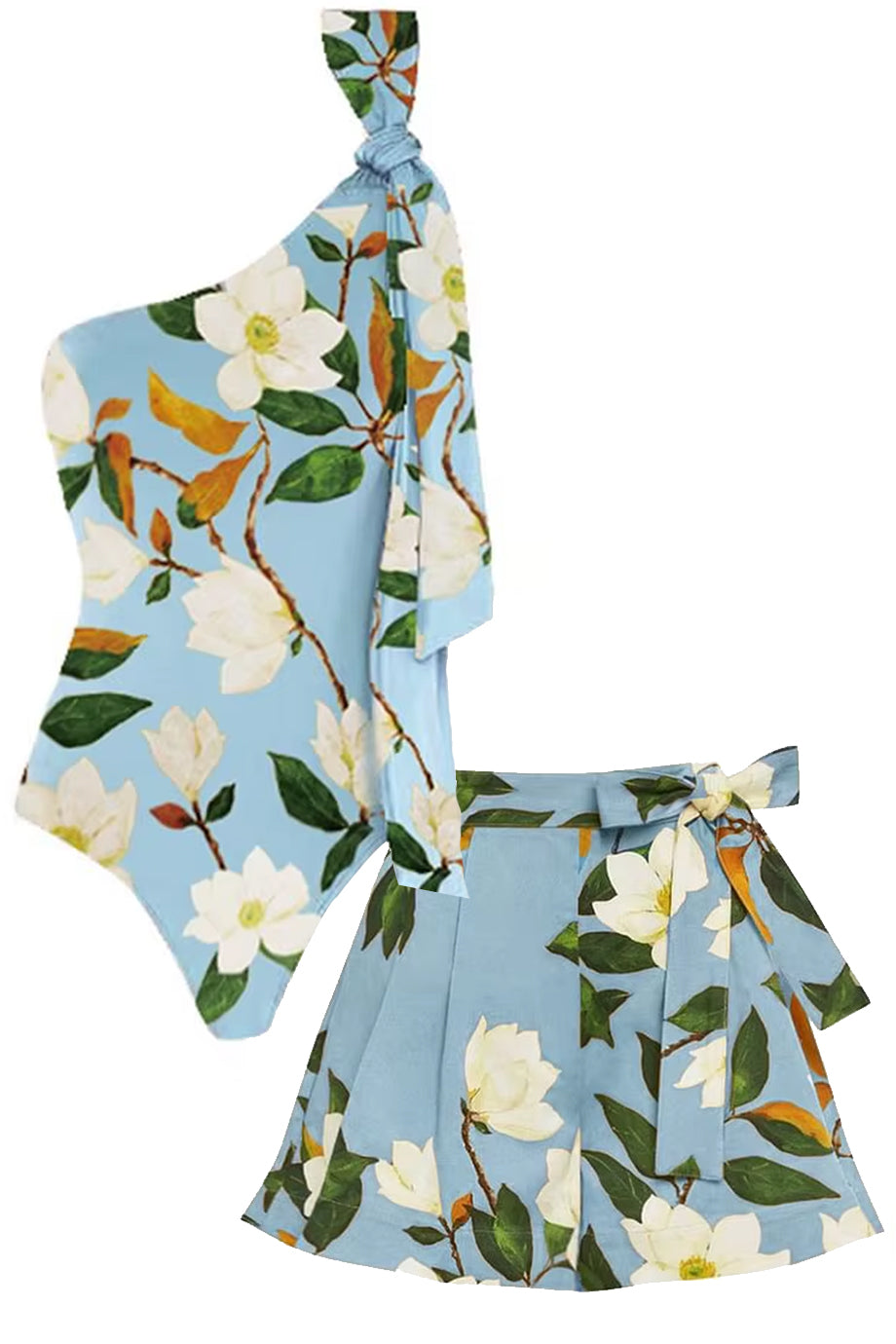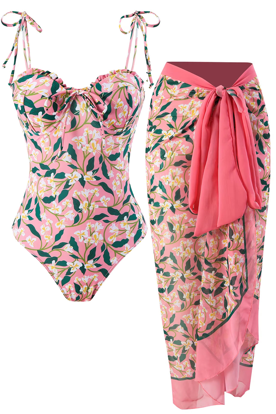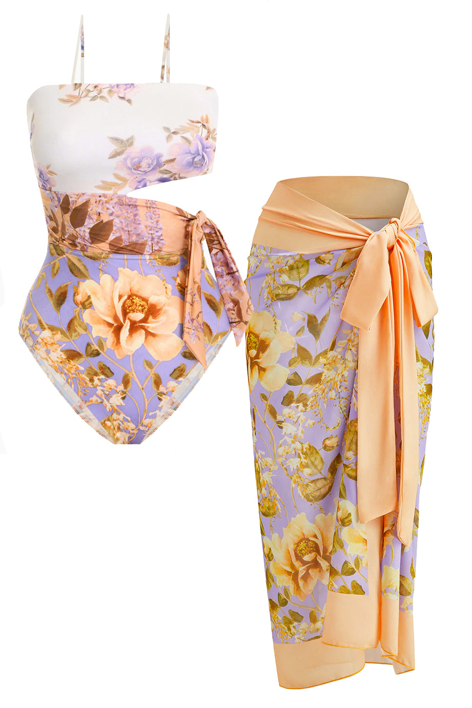 Lilium Bloom One-Piece Swimsuit and Pareo Set