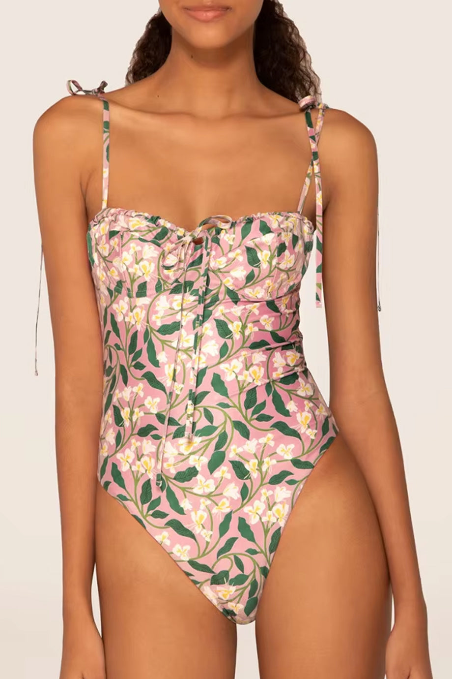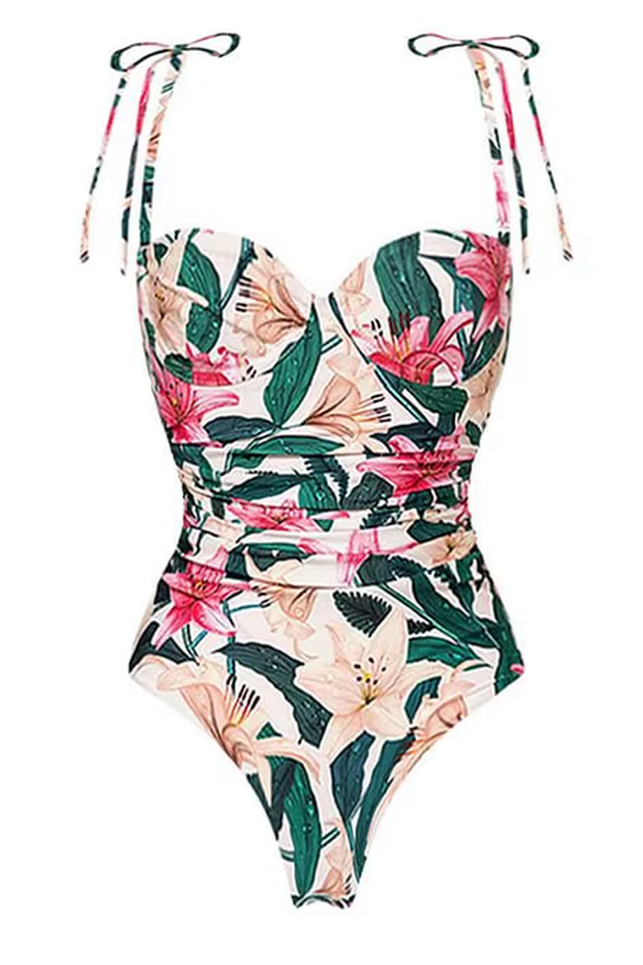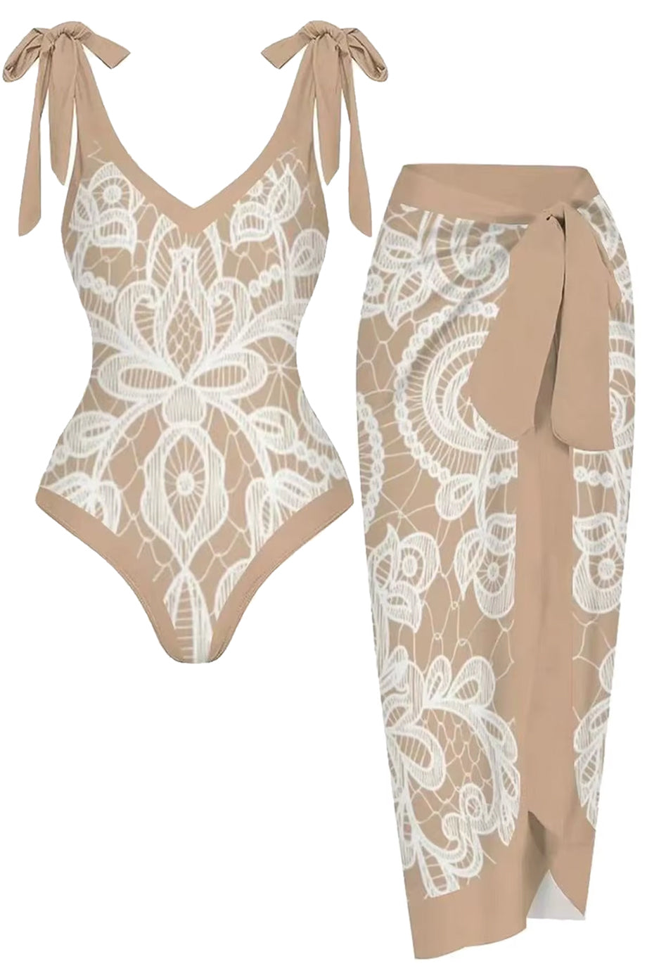 Lilium Bloom One-Piece Swimsuit and Pareo Set