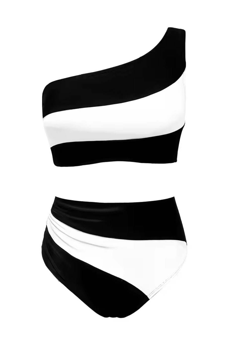 Ecliptica Striped One Shoulder Bikini Swimsuit