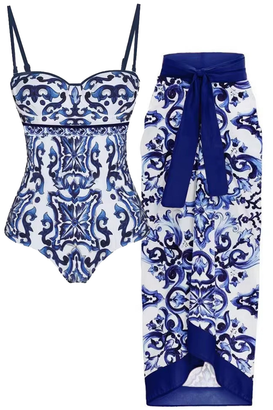 Amalfi Azul One-piece Swimsuit and Pareo Set