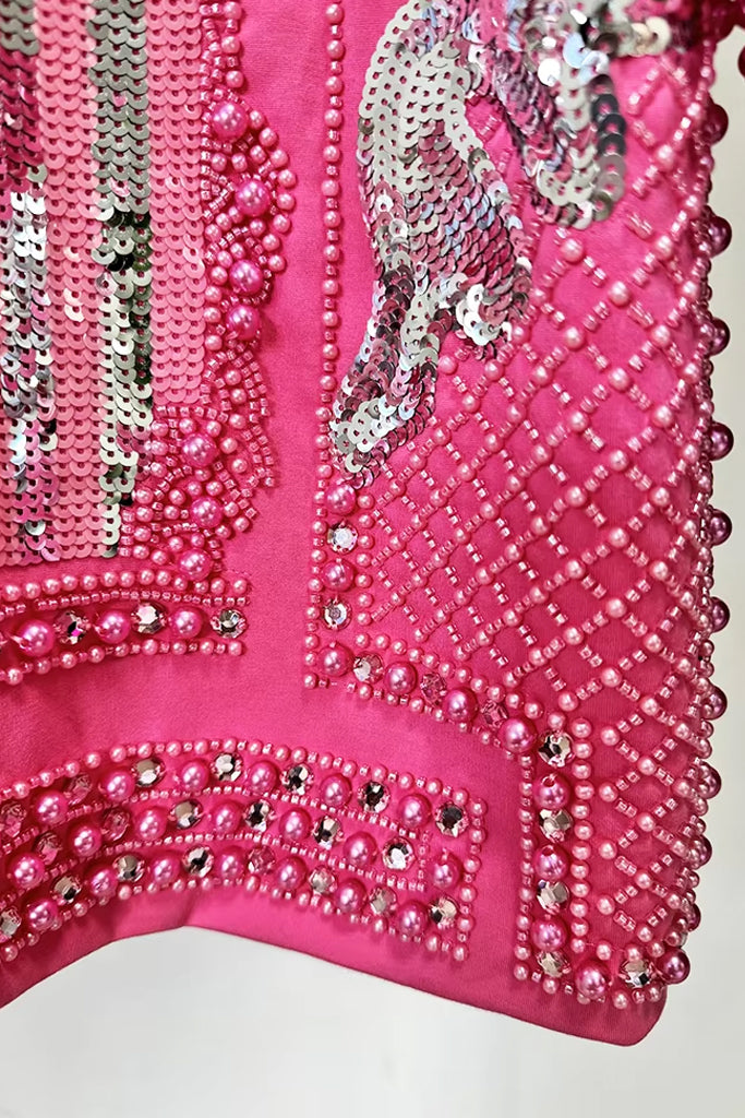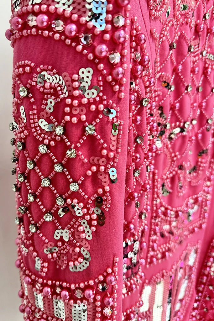 Mini abito unico, ricamato con cristalli, paillettes e perle. L'abito Nayeli ha uno scollo rialzato e maniche lunghe. Si chiude con una cerniera. Consulta la tabella delle taglie qui sotto per la selezione della taglia corretta.