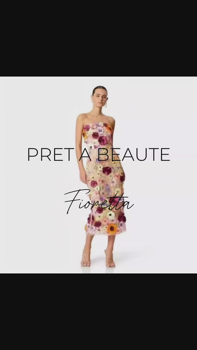 Diventa il fiore nella stanza con l'abito Fioretta! Questo elegante abito senza spalline presenta splendide applicazioni patchwork di fiori delicati, una vita alta per una vestibilità lusinghiera e un design giocoso senza schienale. Perfetto per ogni occasione, questo vestito ti farà sicuramente distinguere dal resto! È la scelta ideale per matrimoni e battesimi.