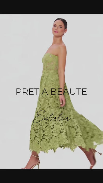 Trasuda senza sforzo eleganza e sicurezza nell'abito Eulalia. Con un design senza spalline, spalle scoperte e vita alta, questo vestito accentua le tue curve e aggiunge un tocco di femminilità. Gli intricati dettagli ricamati e il delicato design scavato aggiungono un tocco raffinato ed esclusivo, rendendo questo abito un must per ogni occasione speciale. Abbinalo ad una sciarpa ariosa e orecchini lunghi per aggiungere un tocco di raffinatezza in più.