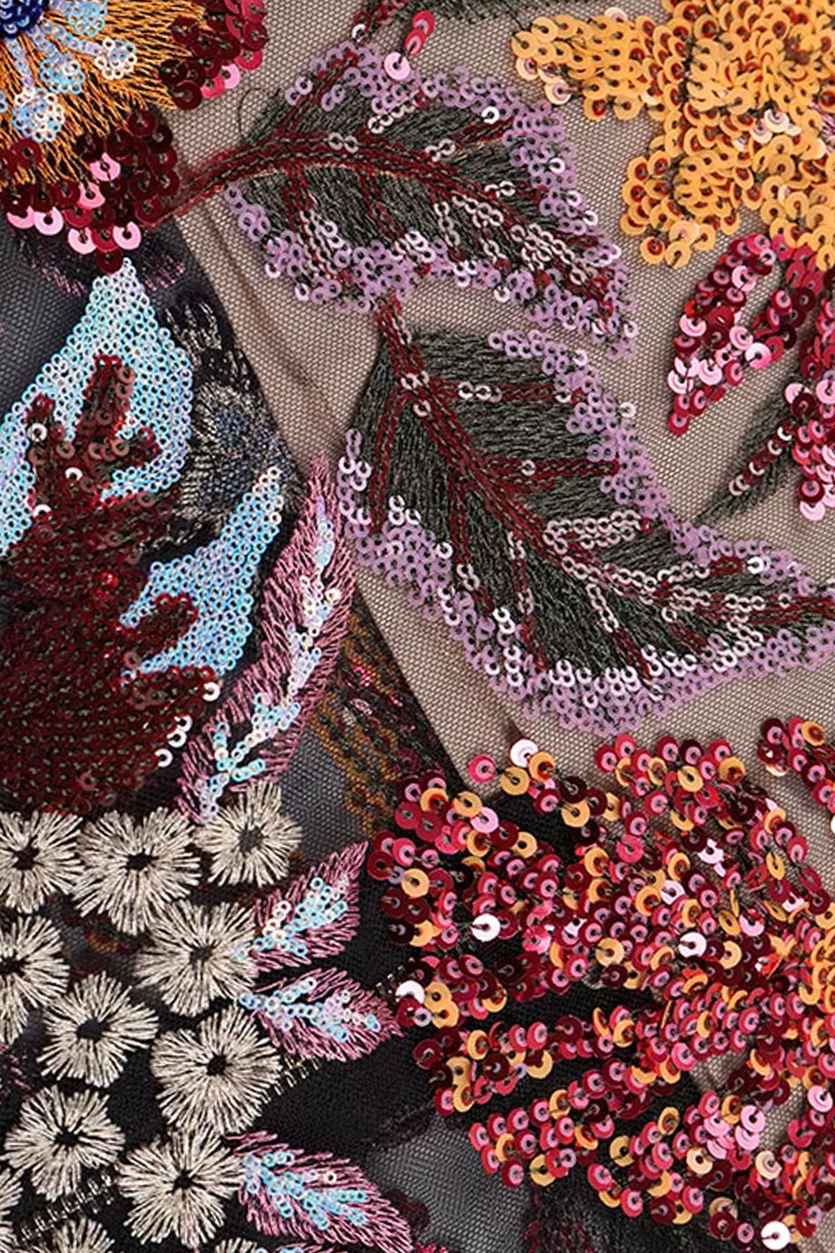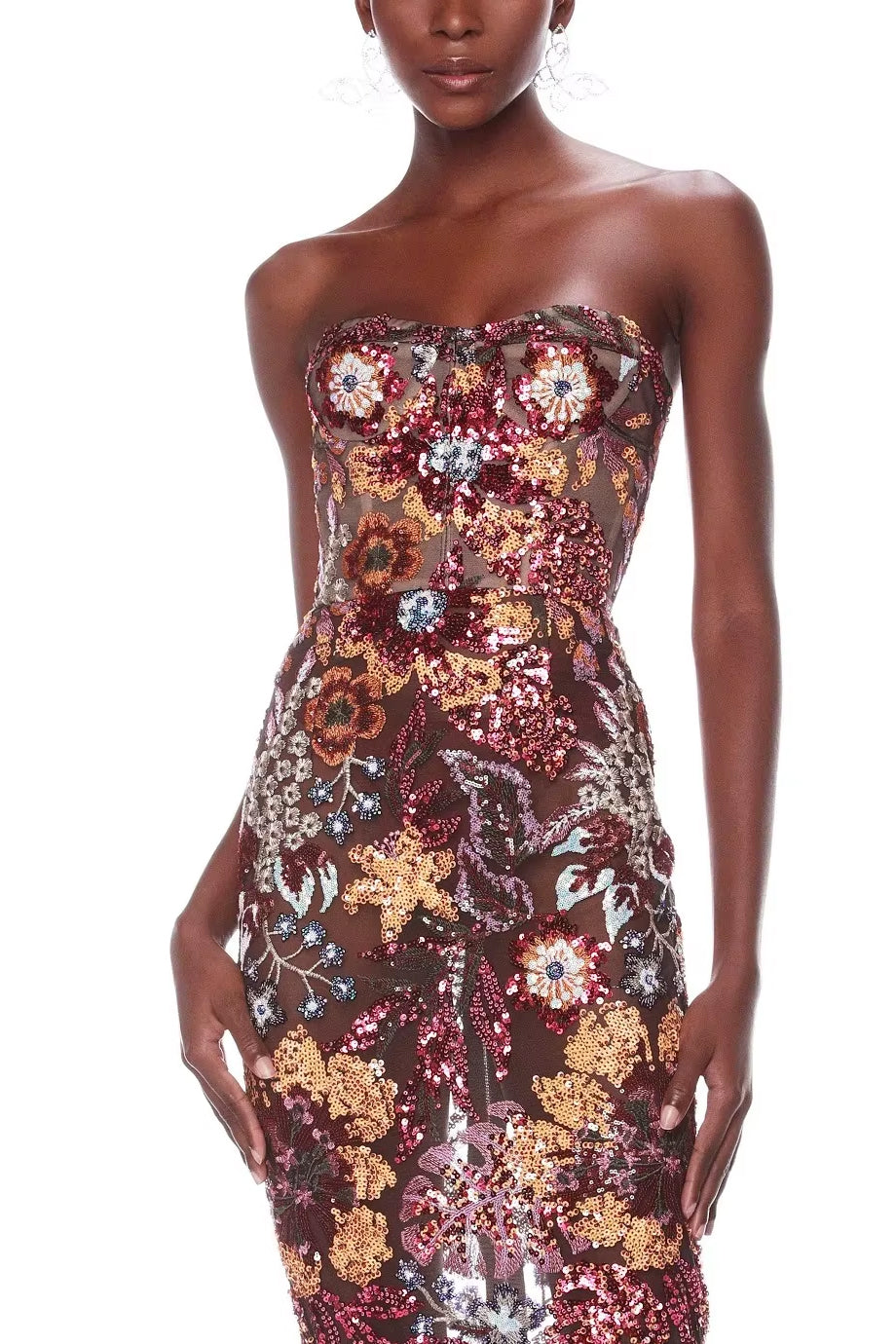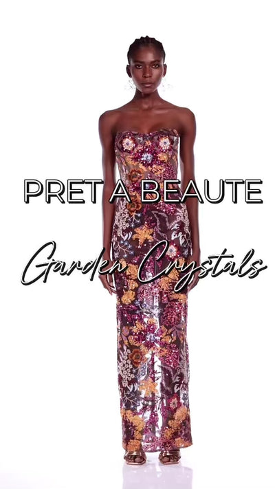 Make an unforgettable entrance with the Garden Crystals dress - a true celebration of femininity, elegance, and sensuality. Designed to sculpt the silhouette like a second skin, this maxi bodycon evening dress is the epitome of sultry sophistication. The strapless neckline creates a striking décolletage, while delicate floral embroidery dances across the figure in a garden-inspired motif. From the thighs downward, a sheer lace panel takes over - subtly revealing skin with every step, adding a whisper of allure and romance. The pencil fit accentuates curves with refined precision, making it an ideal choice for upscale soirées, weddings, or black-tie events. Consult the size chart below for correct size selection.