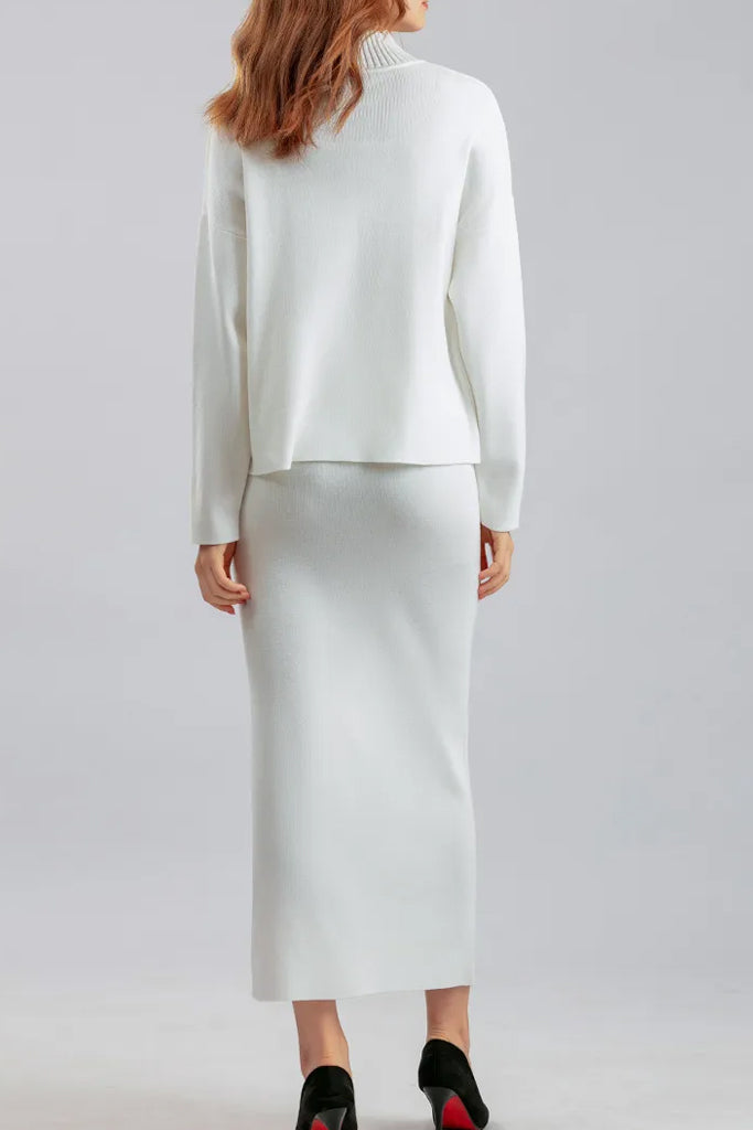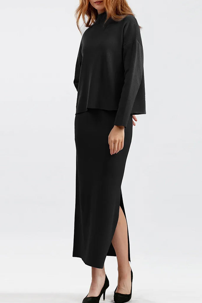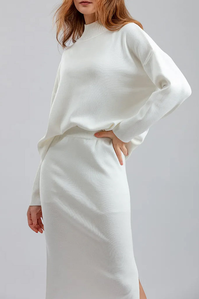 La semplicità può ancora fare una dichiarazione. Un set in maglia comodo e disinvolto di Moncye. Il set Kurt è composto da un top a collo alto con maniche lunghe e una gonna alla caviglia con vita elasticizzata per una vestibilità comoda. Maglia di peso medio. Taglia unica. Consulta la Guida alle taglie qui sotto.
