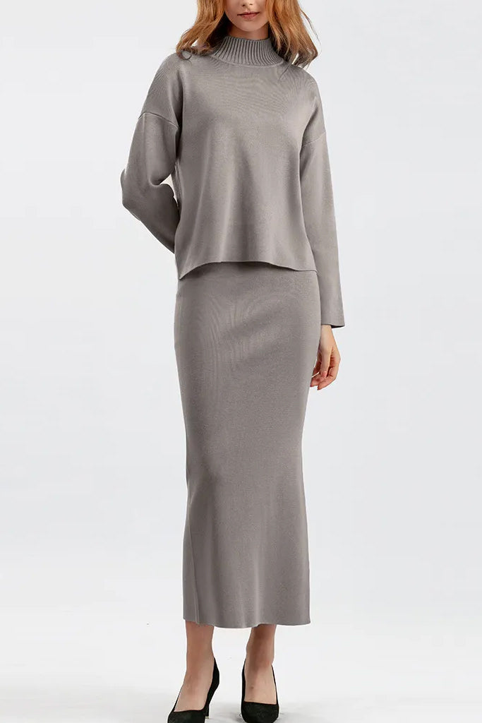 Set Kurt Khaki lavorato a maglia con top e gonna
