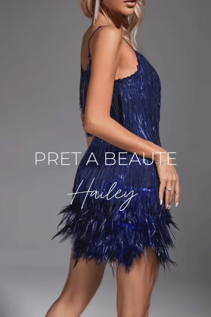 Splendido abito delicato, rosa, con spalle scoperte. L'abito Hailey presenta spalline sottili ed è decorato con nappe di paillettes e decorato con piume sull'orlo. La sua luce affascinante risplende tra movimento e immobilità, facendoti risaltare in ogni evento. Abbinalo a tacchi a spillo e mini bag per un look indimenticabile. Consulta la tabella delle taglie qui sotto per la selezione della taglia corretta.