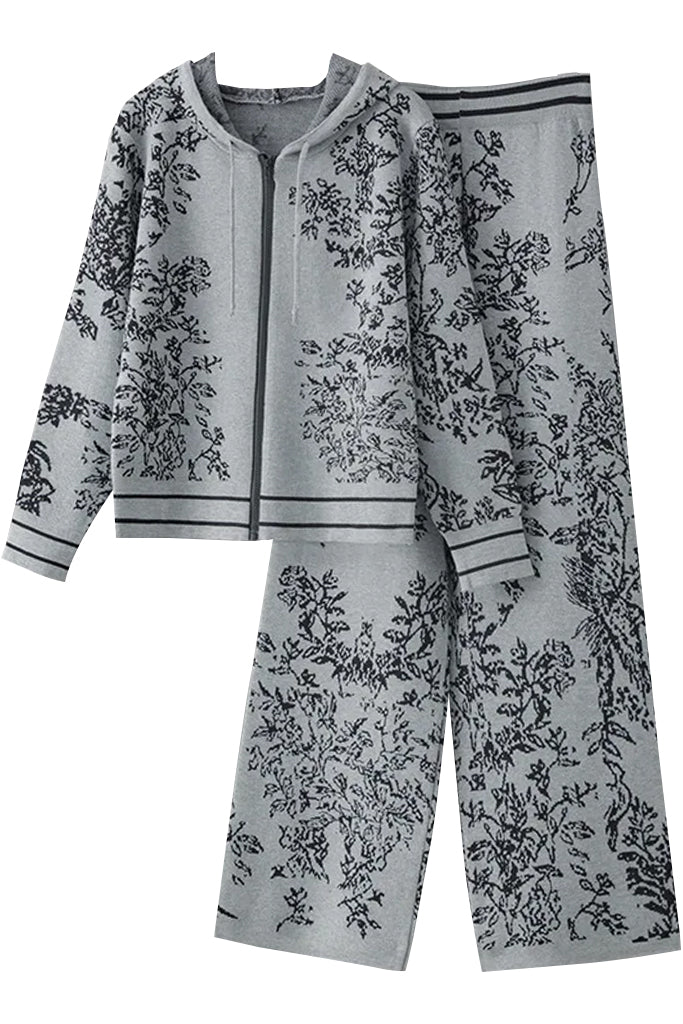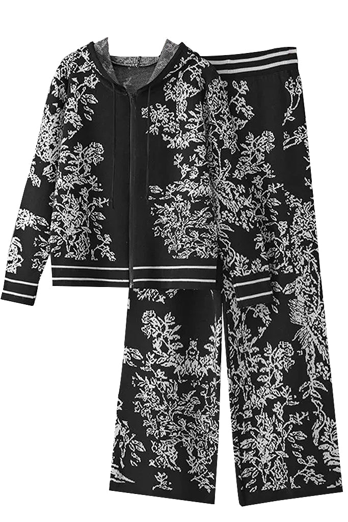 Impressionante set lavorato a maglia per chi vuole sentirsi a proprio agio a tutte le ore della giornata. Il set Bertille è composto da un cardigan lavorato a maglia a maniche lunghe con cappuccio e pantaloni. Taglia unica. Consulta la tabella delle taglie qui sotto.