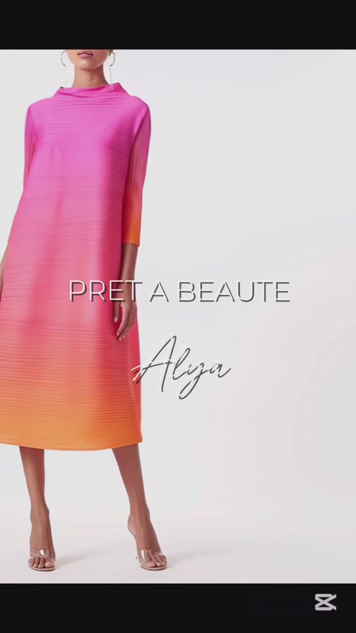 Elegant midi dress by Diane Ford. The Alya dress has a flowing silhouette. It features 3/4 sleeves and stands out for its impressive gradient color effect. The fabric has a light pleated texture, giving movement to the dress. Combine it with sandals and striking earrings for an elegant and modern look.