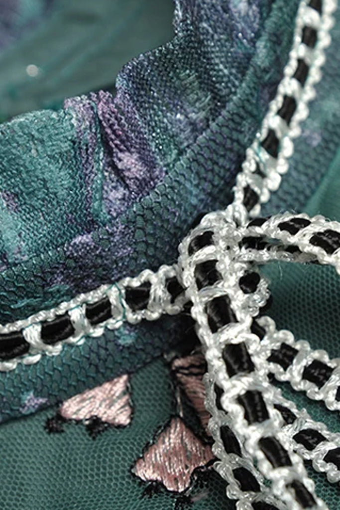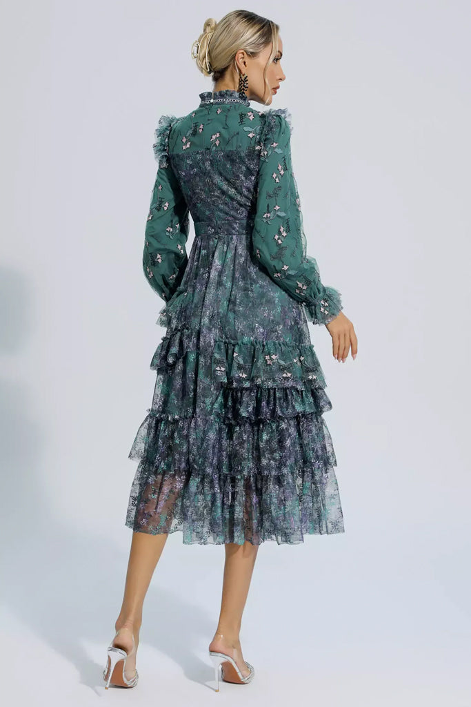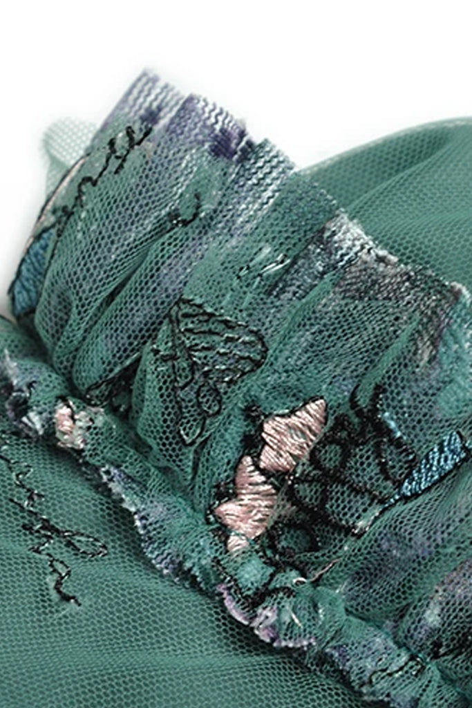 A must-have dress for any elegant occasion. Indulge in luxury with the Ivana dress, that features delicate organza tulle, and is adorned with intricate floral embroidery. The mesh design and long sleeves add elegance and sophistication, perfect for any special occasion. The unique petrol color adds a touch of exclusivity to this statement piece.
