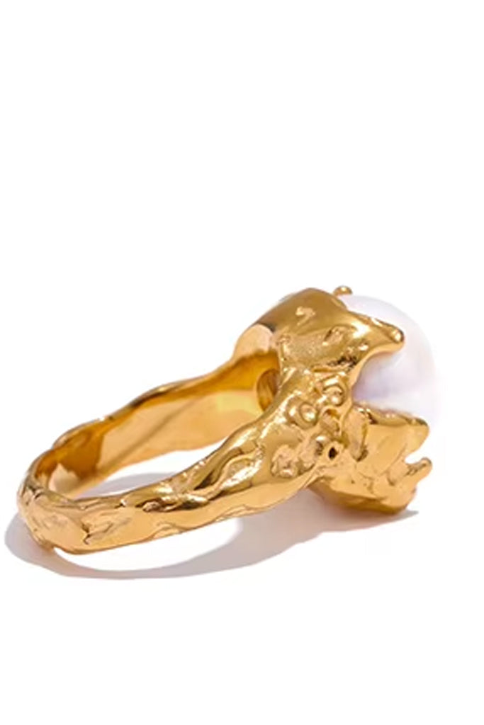 Particularly impressive ring. The Jasie ring is gold plated, with three layers of gold plating. It bears an impressive pearl and elegantly hugs the finger. It is made of steel.