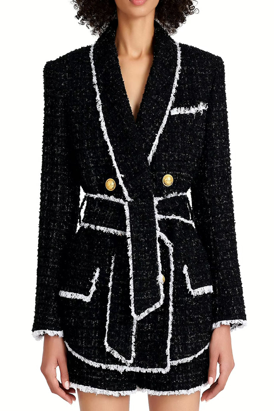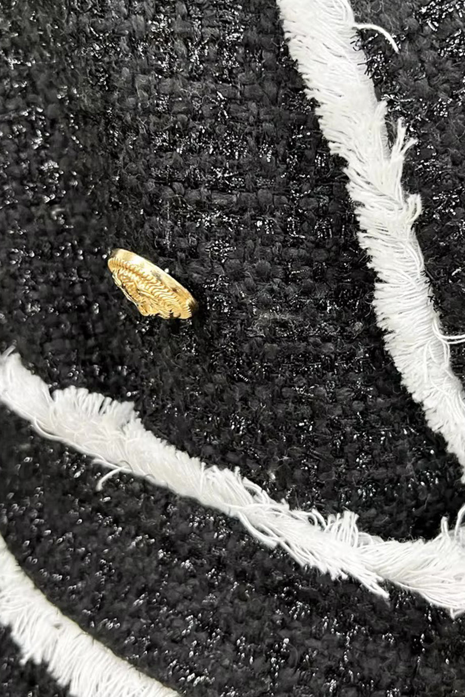 The Koba jacket has a thick knit, a V-neck with a collar and long sleeves. It is decorated with gold buttons and fits with a belt at the waist. Please refer to the size chart below.