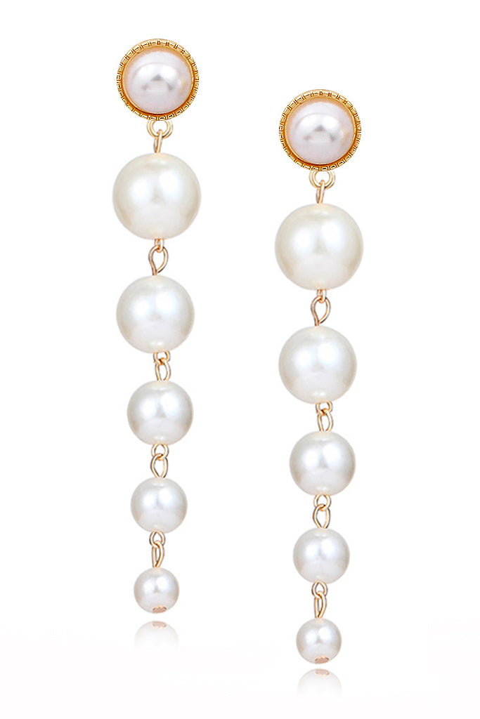 Impressive long pearl earrings from the house of Nassar. Kelley earrings are decorated with six white pearls. They apply with clips.